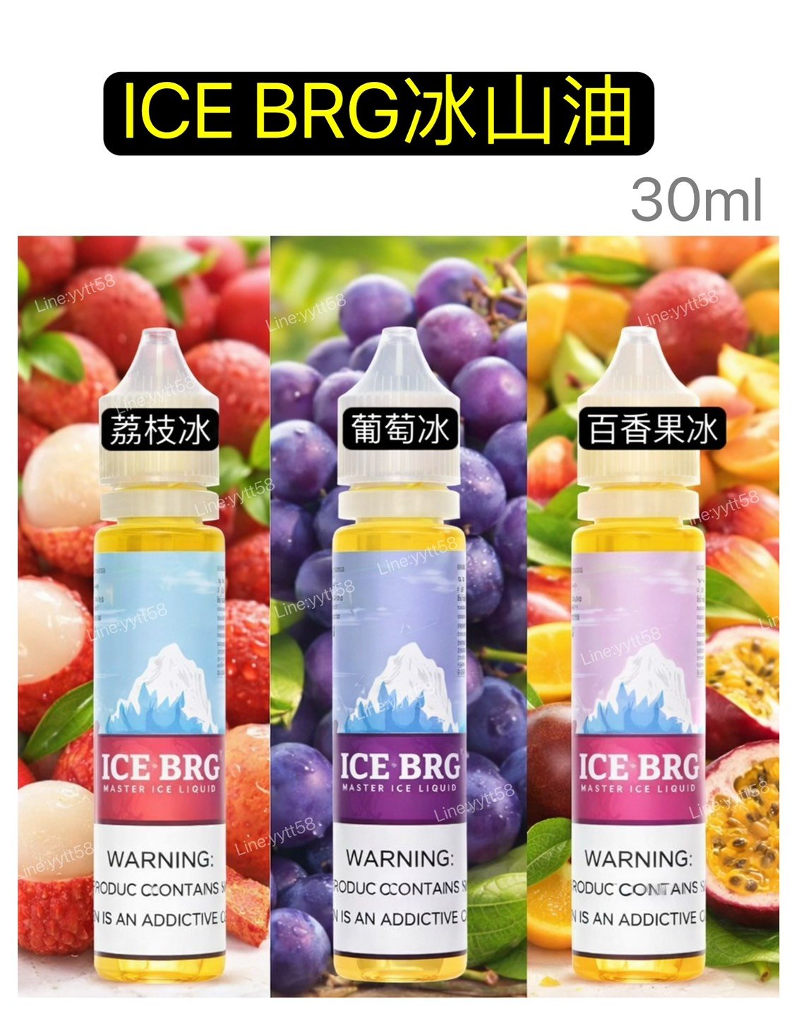 正版冰山油ICE BRG冰山荔枝小油-冰山百香果 冰山葡萄 30ml正版冰山油ICE BRG冰山荔枝小油-冰山百香果 冰山葡萄 30ml