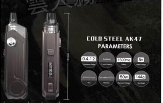 搭載智慧煙油偵測功能,隨時提醒你煙油餘量,避免乾燒情況發生。50W 的強勁輸出讓每一次的霧化都穩定強勁,無論你追求口感還是大煙霧,Cold Steel AK47 都能滿足你的需求。