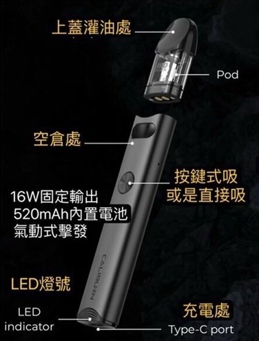 如果你是初學者或是電子煙老手,Caliburn A3S都能滿足你的需求!它簡單上手,無按鍵設計讓你無需學習繁瑣的操作,氣動擊發讓每一口都充滿濃郁的味道,再加上穩定的16W輸出及LED電量提示,讓你隨時隨地享受最佳的吸煙體驗。
